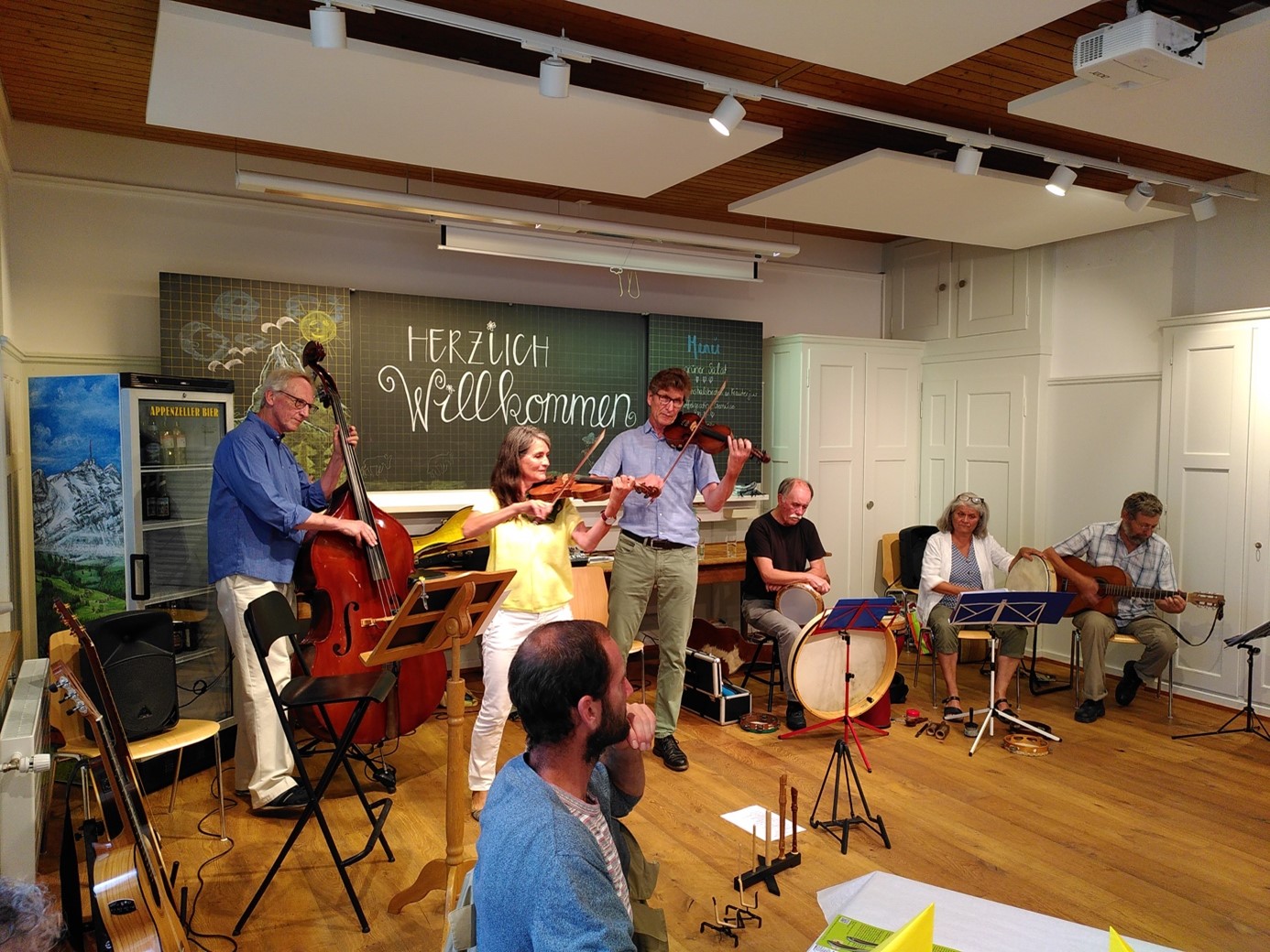 Am vergangenen Freitagabend, 26.08.22 waren die Musikerinnen und Musiker des Folk – Ensembles «Saitenschletzer» im Schulhaus Au zu Besuch und haben die anwesenden Gäste zwischen den Gängen mit Volksmusik aus vielen Teilen Europas unterhalten.