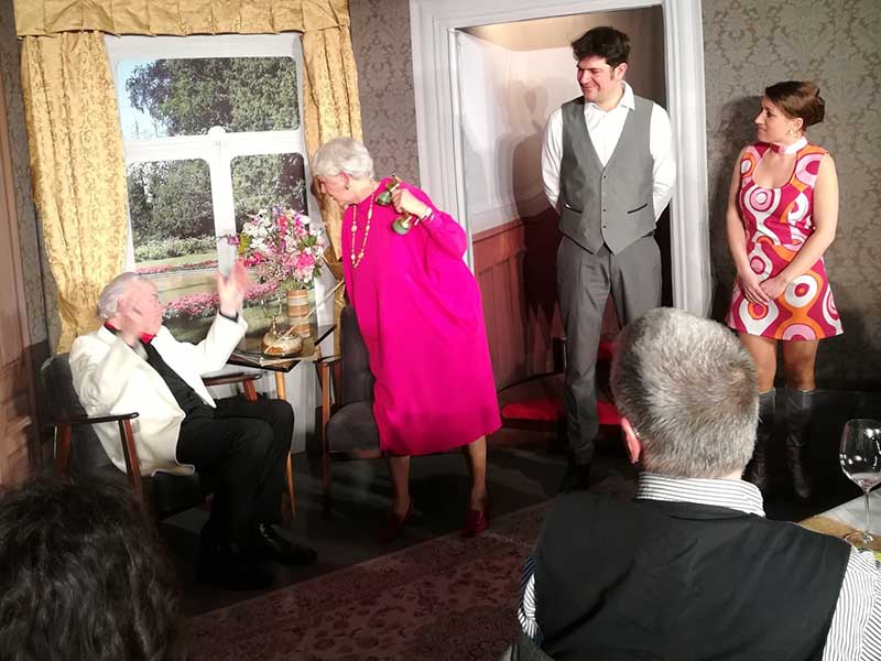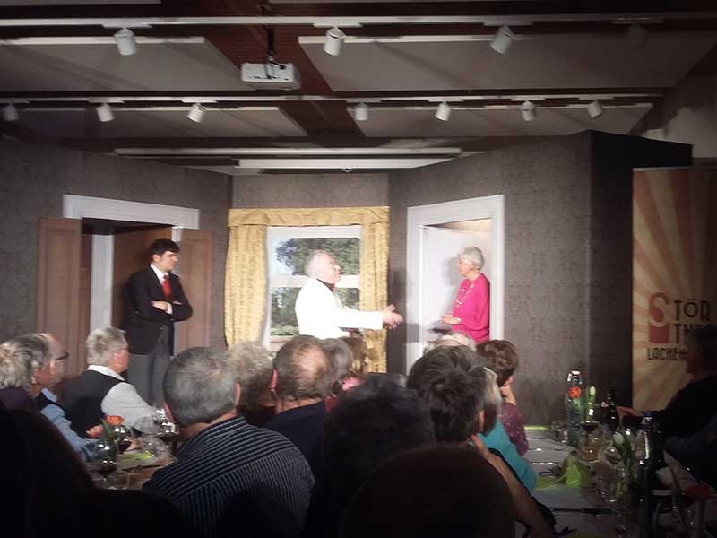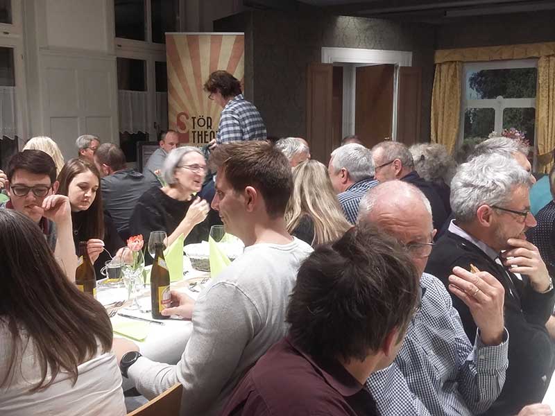 Vor der eigens aufgebauten Kulisse erlebte das Publikum die Intrigen und Wirrungen einer Familie, welche nicht ist was sie zu sein scheint. Zwischen den Akten wurde ein wie gewohnt vorzügliches Menue der Genossenschaftsbeiz serviert. Bei Kaffee und Kuchen liessen die Gäste den Abend gemütlich ausklingen bevor sie sich im Mondschein auf den Heimweg machten.